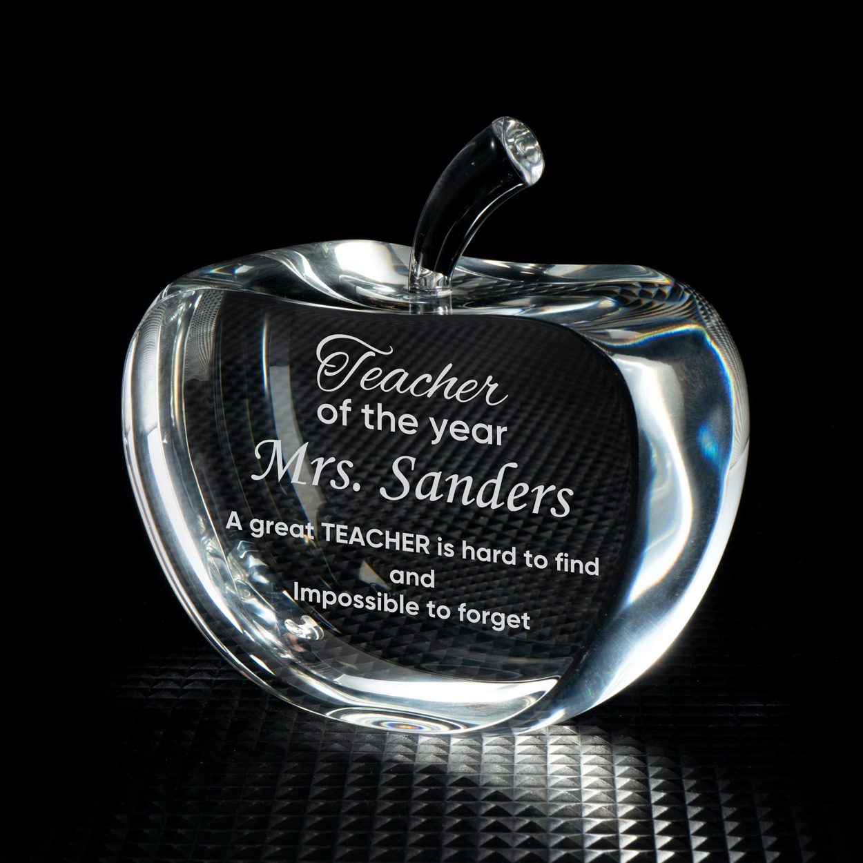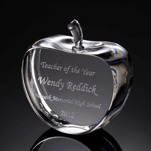 For a larger engraving area, consider these cross-section cut crystal apples. Available in two sizes, these paperweights have been cut to provide a large flat surface, perfect for engraving without distortion.
