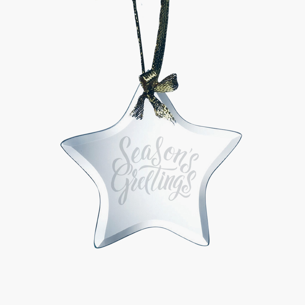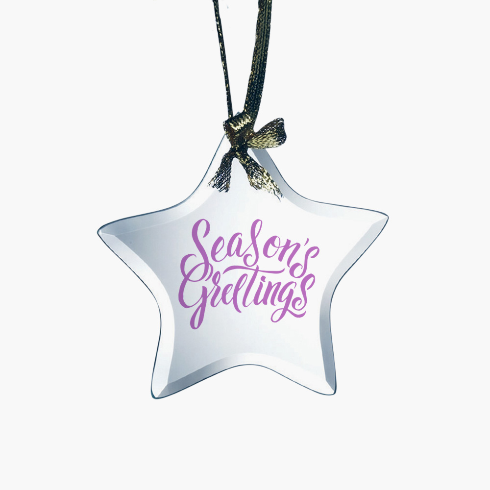 Star-shaped ornaments are a popular Christmas decoration. Personalize these glass ornaments with a full color photo, logos, personalized text or even your own artwork.